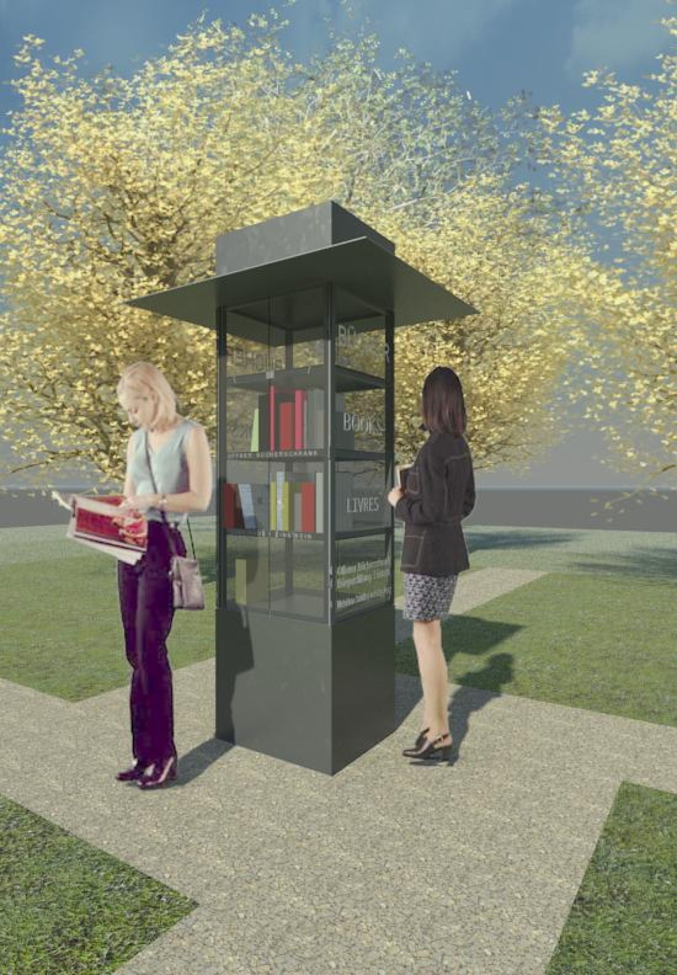 Für die Bürgerstiftung Lörrach haben wir einen öffentlichen Bücherschrank entworfen und zusammen mit Handwerkern realisiert. Zwei von diesen Prototypen mit Rundumverglasung und automatisch schließenden Drehtürchen – wurden in der Stadt aufgestellt. Sie sind bereits zu einer kleinen Institution geworden und werden bestens angenommen.